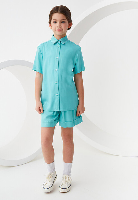 Модель с коротким рукавом выполнена из легкой и качественной 100% вискозы. Приятная на ощупь ткань не потеряет своего первоначального вида после множества стирок. Ткань хорошо пропускает воздух и не закатывается. Рубашка застегивается на пуговицы. Модель свободного силуэта обеспечивает идеальную посадку на любую фигуру. Рубашку можно носить как первым слоем, так и на футболку или топ.С ней можно создавать ультрамодные удобные многослойные образы. Размерный ряд 128 – 176 см.