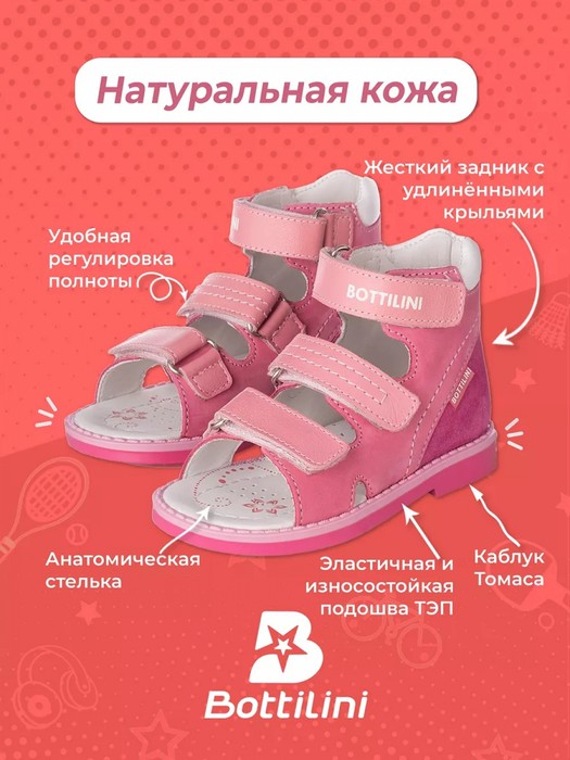 профилактические ортопедические сандалии, изготовлены из натуральной высококачественной кожи. подошва произведена из износостойкого, упругого и нескользящего материала с естественным перекатом в передней части стопы. многослойная стелька с супинатором и умеренной выкладкой свода поддерживает стопу и препятствует формированию плоскостопия. внутренняя часть жесткого фиксирующего задника изготовлена из термопласта, который не деформируется и держит заднюю часть стопы в естественно-правильном положении при ходьбе. мягкий кант смягчает контакт голени с обувью, а цельнокройная подкладка без лишних швов минимизирует риск натирания кожи. застежки вкупе с широкой раскрываемостью моделей обеспечивают идеальную подгонку обуви по полноте.