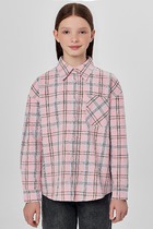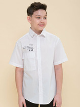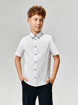 Сорочка приталенного силуэта для мальчика с белой супатной застежкой
