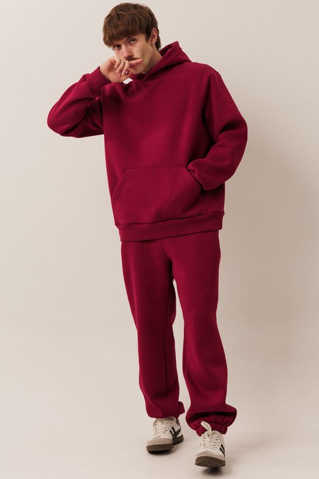 Мужской тёплый уютный костюм. Подойдет для прогулок и отдыха. Изготовлен из футера с начесом, состоит из худи покроя оверсайз и джоггеров.