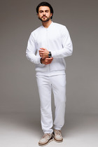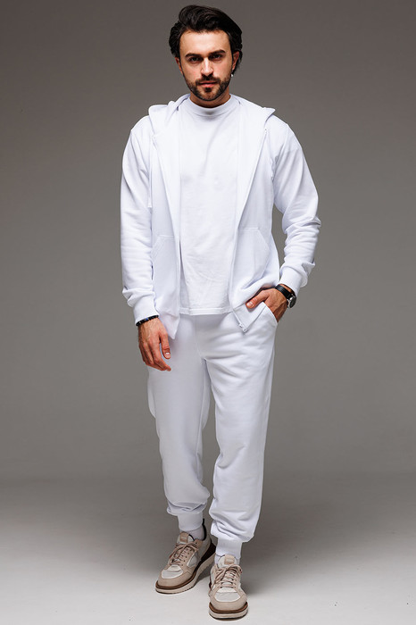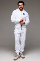 Классический мужской спортивный костюм состоит из худи на застёжке-молнии и брюк на манжетах. Всесезонная ткань сделает его любимым в Вашем гардеробе как для дома, так и улицы.