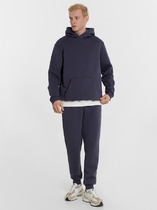 Спортивный костюм с капюшоном, из трехниточного плотного трикотажа с начесом по изнанке. Куртка-худи прямого силуэта. Рукава втачные со спушенной линией плеча. Кокетки куртки, капюшон и нижняя часть задней брючины продублированы водонепроницаемой плащевкой.Карманы накладные "кенгуру". Манжеты рукавов и брючин и пояс куртки из эластичного трикотажа. Брюки с прорезными карманами на молниях, Низ брюк заужен анжетами. Пояс брюк по линии талии с эластичной тесьмой, дополнительно регулируется шнуром.На груди и на брюках под карманом - термотрансфер с фирменным логотипом.