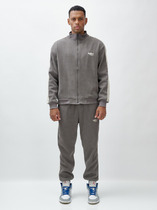 Спортивный мужской костюм изготовлен из легкой плащевой ткани с добавлением лайкры, которая при носке обладает упругим растяжением подобно трикотажному полотну. Куртка на молнии с воротником, с подкладкой из легкой трикотажной сетки. Куртка свободного силуэта, заужена книзу поясом из трикотажной резинки с полосками, воротник- стойка также выполнен из трикотажной резинки. . Карманы прорезные, с открытыми молниями. Крой рукава - втачной, низ рукава слегка заужен трикотажным манжетом с контрастными полосами. Слева на груди вышивка "герб России", На левом рукаве вышивка аппликация - флаг России, на спине надпись RUSSIA. Все вышивки выполнены цветными шелковыми нитями. Брюки костюма на сетчатой подкладке. Карманы брюк прорезные с открытыми молниями. Слева под карманом настрочен шеврон с фирменным логотипом.