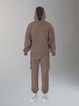 Спортивный костюм из полиэстеровой ткани с изнаночным начесом, в стиле ретро спорт. Карманы куртки и брюк прорезные с открытыми молниями. По рукавам и боковой стороне брюк лампасы белого цвета. Посадку по фигуре обеспечивает эластичная трикотажная рибана. Брюки прямого силуэта. Пояс по линии талии регулируется шнурком. На полочке выполнена вышивка герба СССР. На спинке аппликация букв СССР. На брюках вышивка букв СССР.