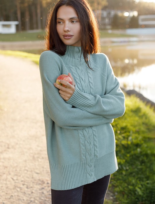 Свитер фактурной вязки с узором косы