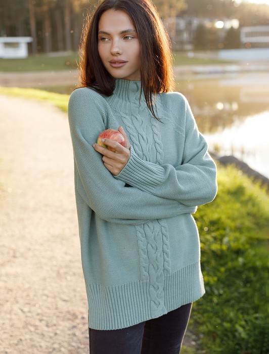Состав: 60%Хлопок 40%ПАН (акрил) Параметры модели на первом фото: Рост 170, бюст 83, талия 64, бедра 88Свитер выполнен из мягкой хлопковой пряжи фактурной вязки с добавлением акрила. Модель связана изнаночной петлей, в сочетании с которой узор косы и высокие рибаны поддерживают ирландский стиль, который всегда в тренде. Комфортный ворот стойка хорошо защищает от ветра. Боковые разрезы поддерживают расслабленный свободный силуэт. Изделие сочетается с любым низом и не требует дополнительных аксессуаров.
