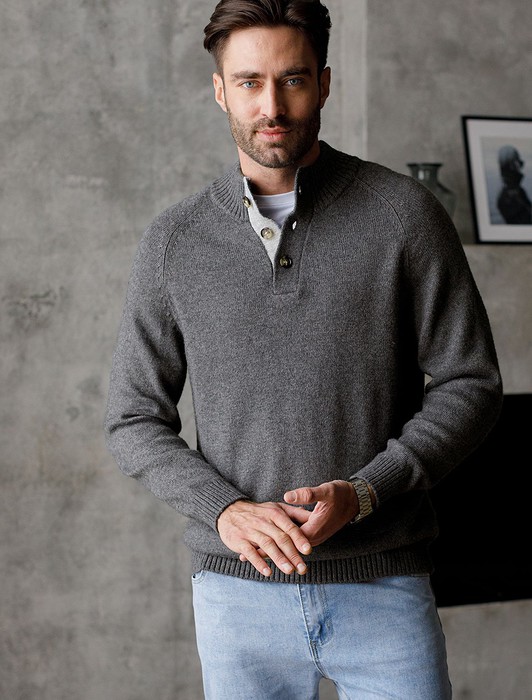 Совместные покупки Челябинск Мужская одежда Футболки — Свитер из теплой пряжи с шерстью с застежкой на крупные пуговицы