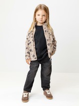 Свитшот прямого силуэта с втачными длинными рукавами, по линии низа имитация текстильной рубашки. Изделие выполнено из полотен контрастного цвета и разной текстуры, на полочке есть принт. Горловина круглая и обработана притачной бейкой. В качестве дополни