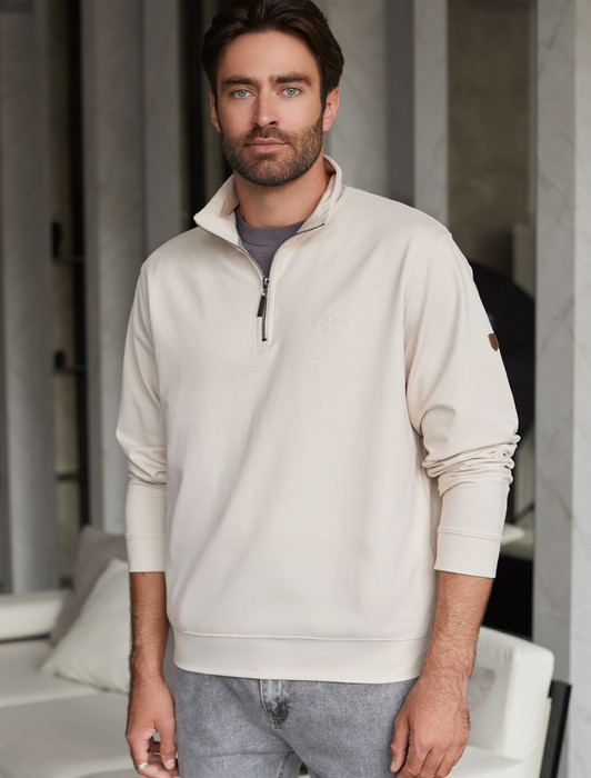 Состав: 95%Хлопок 5%ПУ Размер товара на первом фото: 42Уютный и стильный свитшот светло-бежевого цвета с воротом-стойкой на молнии - идеальный выбор для повседневного образа. Выполнен из премиального футера двухнитки с эластаном, Изнаночная сторона невероятно мягкая, что делает материал особенно приятным к телу. Благодаря эластичной структуре ткань хорошо тянется, сохраняет форму после длительной носки и обеспечивает свободу движений даже в самых активных буднях, а натуральный состав обеспечивает отличную воздухопррницаемость, позволяя коже дышать и не перегреваться.
