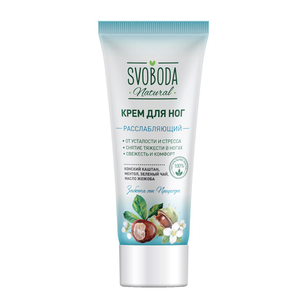 Крем для ног Svoboda Natural «Расслабляющий и восстанавливающий» с экстрактом конского каштана содержит ментол, благодаря которому эффективно освежает и охлаждает уставшие ноги.