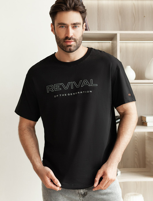 Состав: 92%Хлопок 8%ПУПеревод принта: Revival of the generation - возрождение поколения. Футболка свободного кроя выполнена из премиального хлопка. Авторский принт нанесен красками с устойчивым покрытием. Благодаря эластану, носить изделие очень комфортно, и оно сохранит свой безупречный вид в течение долгого времени. На рукаве нашивка из эко-кожи с логотипом бренда.