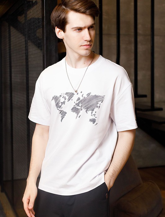 Состав: 92%Хлопок 8%ПУ Плотность: 170 Г/м2Футболка свободного кроя выполнена из премиального хлопка. Авторский принт нанесен красками с устойчивым покрытием. Благодаря эластану, носить изделие очень комфортно, и оно сохранит свой безупречный вид в течение долгого времени. На рукаве нашивка из эко-кожи с логотипом бренда.