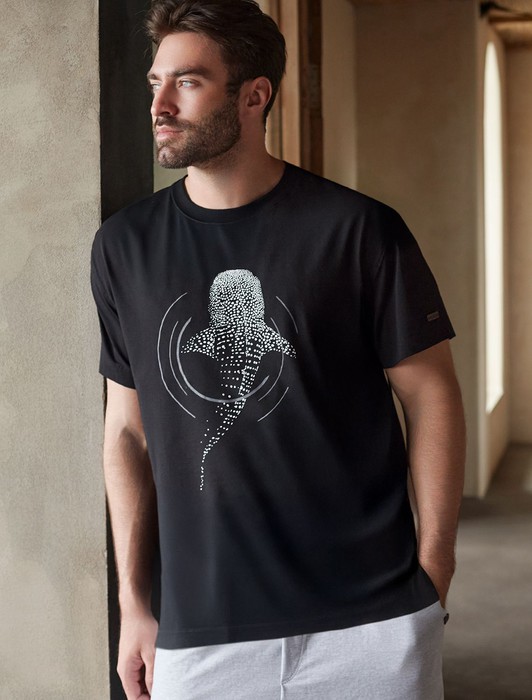 Состав: 92%Хлопок 8%ПУ Плотность: 170 Г/м2Футболка свободного кроя выполнена из премиального хлопка. Авторский принт нанесен красками с устойчивым покрытием. Благодаря эластану, носить изделие очень комфортно, и оно сохранит свой безупречный вид в течение долгого времени. На рукаве нашивка из эко-кожи с логотипом бренда.