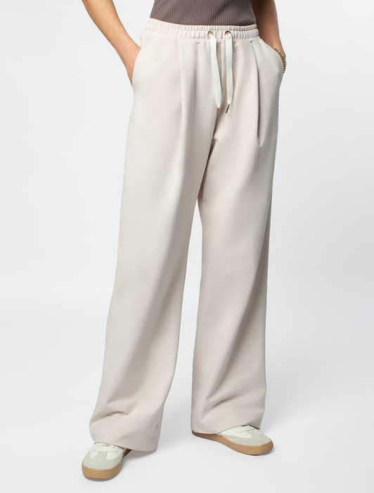 Состав: 75%Хлопок 20%ПЭ 5%ПУ Параметры модели на первом фото: Рост 170, бюст 89, талия 63, бедра 92Брюки свободного кроя выполнены из эластичного футера-двухнитки. Модель дополнена защипами и боковыми карманами как у классических брюк и одним задним карманом. Эластичный пояс на резинке с шнурком из репсовой ленты и металлической фурнитурой. Брюки сочетаются в костюме с футболкой D49.031, D49.085, бомбером D49.038 и паркой D49.075