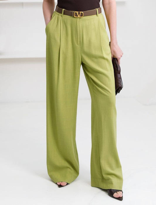 Состав: 70%Вис 30%Лен Плотность: 200 Г/м2Свободные брюки палаццо салатового цвета изо льна с вискозой, плотностью 200 Г/м2 — выбор, который легко выделит в любой обстановке. Свободные длинные брюки с высокой посадкой создают идеальный силуэт, визуально вытягивают и стройнят фигуру. Натуральный состав ткани обладает высокой воздухопроницаемостью, хорошо драпируется и мягко прилегает к фигуре, создавая струящиеся складки. Мягкая эластичная резинка, встроенная в пояс брюк, обеспечивает идеальную посадку по фигуре, не сдавливая талию и гарантируя максимальный комфорт при движении. В повседневных брюках будет очень комфортно, благодаря правильной регуляции температуры тела. Брюки подходят на маленький и высокий рост, а так же на любую фигуру, позволяя подчеркнуть достоинства и скрыть возможные недостатки. Летние льняные брюки отлично сочетаются с монохромным верхом для вытягивания силуэта, с ними можно создавать эффектные наряды как на выход, так и для ежедневных рабочих дел или простых прогулок, от делового шика до повседневного кэжуал.