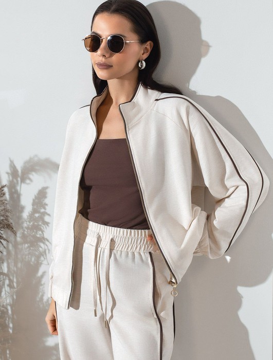 Совместные покупки Челябинск Женская одежда Футболки — Свободный бомбер с лампасами на молнии из петельчатого футера двухнитки с эласта