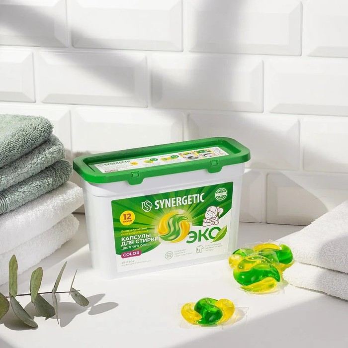 Биоразлагаемые гипоаллергенные капсулы для стирки SYNERGETIC COLOR обеспечивают гигиеническую чистоту, проникая глубоко в волокна ткани и расщепляя самые сложные загрязнения, препятствуют появлению катышков и ворсинок, а также устраняют неприятные запахи.