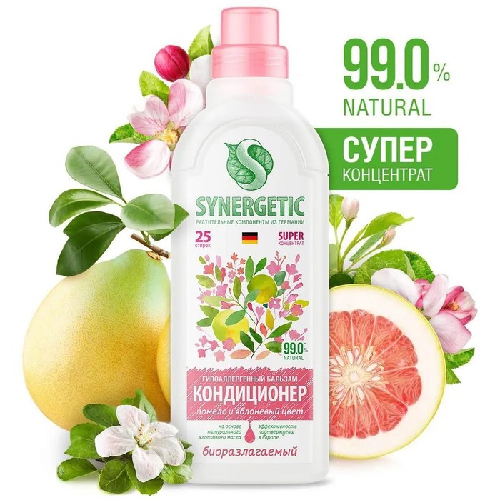 Биоразлагаемый концентрированный бальзам-кондиционер с нежным ароматом "Помело и яблоневый цвет" на основе масла хлопка придает белью мягкость и способствует его быстрому высыханию после стирки. Средство обладает антистатическим эффектом, а содержащийся в нем комплекс растительных К-тензидов обеспечивает легкую глажку одежды. Эффективность подтверждена в Германии.