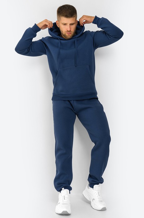 Надежный спутник спорта, туризма и отдыха на природе! Теплый мужской костюм джинсового цвета выполнен из качественного трикотажа футер с начесом. В комплекте толстовка с капюшоном и брюки джоггеры.