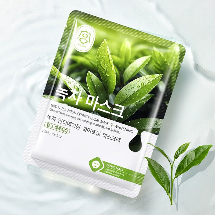 Совместные покупки Челябинск Косметика и парфюмерия Прочий макияж — Тканевая маска для лица с экстрактом Зеленого чая, Ромашки и Церамидами Gongpei