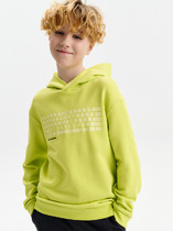 Толстовка прямого кроя с капюшоном на шнурке. Низ толстовки обработан закрепляющей декоративной строчкой. Полочка декорирована печатью и аппликацией с изображением цветов.