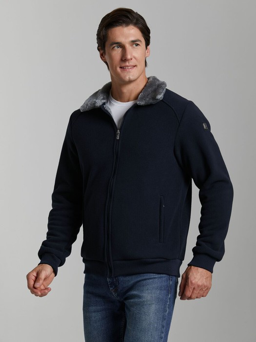 Толстовка мужская в стилистике летной куртки изготовлена из плотного флиса, дублированного мехом. Застегивается на молнию. Воротник отложной, отделан внутренним мехом. Низ куртки заужен трикотажным поясом. Рукава втачные, низы рукавов на трикотажном манжете. Карманы прорезные, с молниями На левом рукаве шеврон с фирменным логотипом.