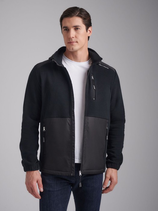 Толстовка мужская из флиса с капюшоном. Низ куртки и низ рукавов выполнены с эластичной рибаной. Толстовка с накладными карманами "кенгуру". Рукава "реглан". По всем швам выполнена отделочная строчка. По низу толстовки расположен, вдоль шва притачивания пояса настрочен шеврон с фирменным логотипом. В капюшоне расположены декоративные шнуры.