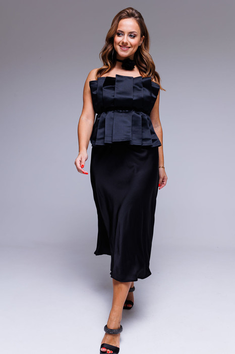 Топ черный атлас, обработаны по переду складки, застежка сбоку на потайную молнию