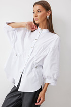 Vilatte Удлиненная блузка с поясом в тонкую полоску из эластичного хлопка D29.30
