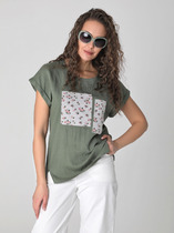 Топ выполнен из сетки с рисунком. Топ А-образного силуэта, длиной выше линии бедер. Перед и спинка цельные. Пройма V-образной формы. Топ на нерегулируемых бретелях.
