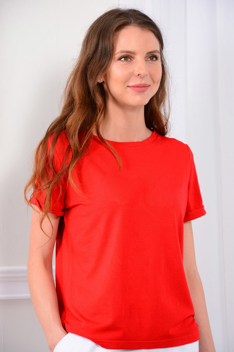 Футболка женская прямого силуэта из вискозы. Рукава втачные с отложными манжетами.