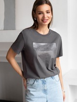 Нарядная футболка с принтом фольгой из премиального хлопка с эластаном
