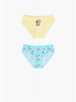 Трусики из принтованного эластичного хлопкового материала с вставками из кружева. Передняя деталь декорирована атласным бантиком и ажурным кантом. В комплект можно подобрать Бюстгальтер Push-up.
