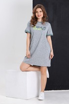 Туника молодежная из трикотажного меланжированого полотна «кулирка» в двух видах контрастных по цвету, прямого силуэта с короткими втачными рукавами и отделочной вставкой в области плечевых швов, принтом на полочке, выполненным в технике «шелкография». Горловина и рукава обработаны притачной планкой и манжетами контрастного цвета, в боковых швах карманы.