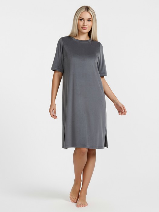 Туника женская из гладкокрашенного полотна «велюр стрейч», свободного покроя, с короткими втачными рукавами, горловиной овальной формы, обработанной втачной планкой и разрезами в боковых швах.