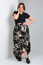 Юбка-карандаш на узком притачном поясе. Низ изделия декорирован широким ажурным кружевом . Потайная застежка-молния и разрез расположены в среднем шве заднего полотнища юбки.