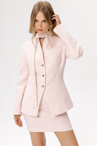На модели в юбке цвета «светлый лео» жилет из эко кожи 1502.1, рубашка из атласа 1503 и топ 1440.