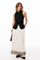 marksandspencer Pure Cotton Button Front Midi Tiered Skirt Burgundy