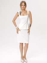 Классическая юбка карандаш с высокой талией и длиной ниже колена. По заднему полотнищу средний шов, в котором обработана шлица-разрез. Верхний срез юбки на резинке. Силуэт прилегающий. Юбка на подкладке.