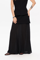 Эта женская юбка длины «миди» изготовлена с подкладкой для дополнительного комфорта и идеальной посадки. Модель имеет свободный крой, расширяющийся к низу, что придает силуэту женственность и легкость. Перед и спинка украшены аккуратным средним швом, добавляющим структуру и элегантность.