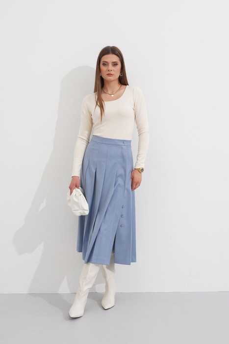 Юбка А-силуэта с оригинальным кроем от бренда Ketty станет идеальным решением для любительниц женственности и делового стиля. Юбка женская миди с поясом фиксируется сбоку на одну пуговицу в тон. Сбоку сделан акцент в виде разреза и застежек-пуговиц. Юбка женская превосходно сидит по фигуре и корректирует область талии. Юбка декорирована плиссировкой с широкими складками и создает дополнительный объем и легкость. Длинная юбка с разрезом имеет подкладку для комфортной носки. Юбка миди предполагает многообразие вариантов для комбинирования: с джемпером, базовой рубашкой, водолазкой, футболкой. Идеально подойдёт для прогулок, работы, отдыха, свиданий, офиса, праздников и для повседневной носки. В женской юбке вы будете чувствовать себя уверенно и комфортно!