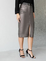 Vilatte Юбка карандаш металлик средней длины с разрезом из эластичного денима D5