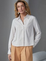 Состав: 65%Хлопок 35%ПЭ Плотность: 112 Г/м2Стильная укороченная блузка белого цвета в бежевую полоску создана для комфорта в любой ситуации. Хлопок делает модель приятной для тела и хорошо дышащей, что особенно важно в течение долгого дня. Свободный крой не ограничивает движения, подходит на любую фигуру и гармонично смотрится в разных образах. Всегда актуальный принт в полоску визуально вытягивает и стройнит фигуру, добавляет образу динамики, делая блузку эффектным акцентом в гардеробе. Повседневная блузка держит форму даже после продолжительной носки, что помогает всегда выглядеть аккуратно. На спинке блузки расположена встречная бантовая складка с наклоном, что создаёт красивый визуальный эффект и придаёт дополнительный объем. Рукава обработаны широким манжетом на 2 пуговицы. Дополнительная пуговица на планке рукава не даёт раскрываться и топорщиться разрезу.. Отложной воротник придает классический вид,, подходящий для офисных будней. Особенно стильно рубашка смотрится в непринужденных, городских или повседневных комплектах.