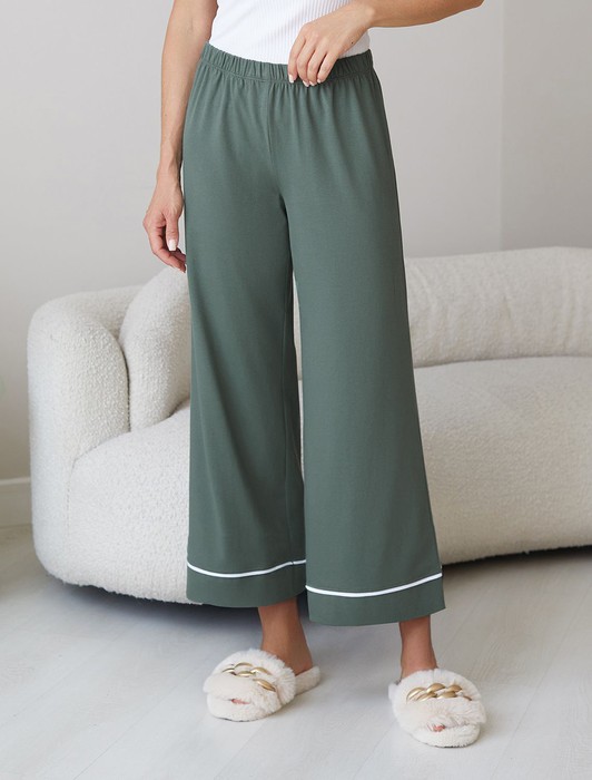 Контрастный кант по низу добавляет стильный акцент и возможность сочетать с белыми футболками нашего бренда. Эти брючки идеально подойдут тем, кто ищет стильное решение с учетом комфорта и удобства, в них вы будете женственны и утонченны даже в домашней обстановке.