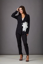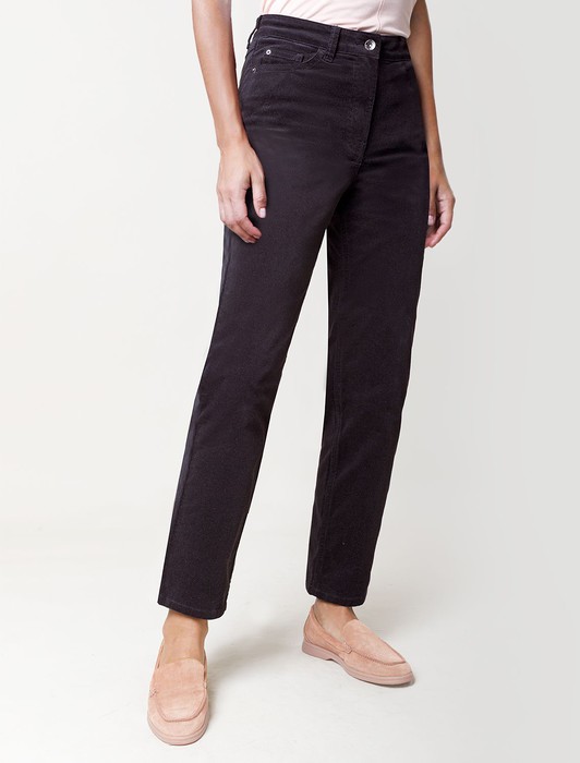 Брюки скроют недостатки фигуры, вытягивают силуэт и удлиняют ноги, благодаря завышенной талии. Пять карманов, как у джинс, добавляют функциональности, а высококачественная фурнитура гарантирует надёжность. Актуальная однотонная расцветка позволит легко комбинировать штаны с другими вещами из гардероба. Брюки джинсы хорошо комбинируется с вязаным трикотажем, блузками и денимом. Как альтернатива классическим брюкам, в нестрогий офисный дресс-код.