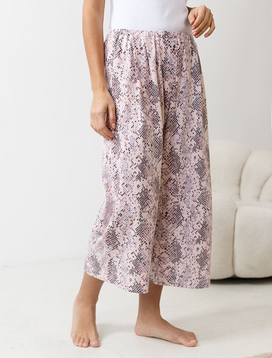 Укороченные широкие брюки кюлоты c принтом на резинке из 100% хлопка