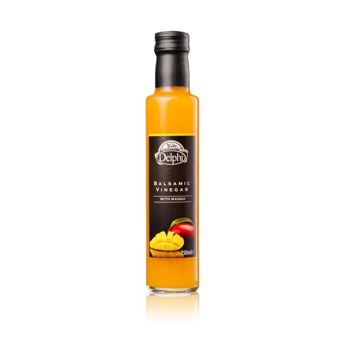 Эта восхитительная приправа была рождена из сочетания бальзамического уксуса известного греческого производителя и натурального манго. Его чистый, глубокий желтый цвет дополняет свежий аромат манго, а сладкий и насыщенный вкус обладает сдержанной кислотностью и длительным послевкусием.