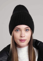 Шапка женская одинарная с отворотом. Длина модели 24 см. Размер: 56-58. + Снуд однотонный, одинарный.