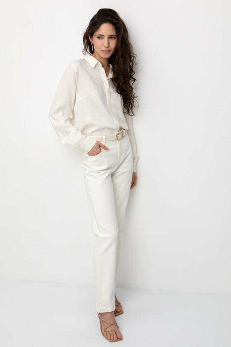 Женские джинсы из мягкого стрейч денима прямого кроя с завышенной линией талии. Модель с классическими 5 карманами и фирменной нашивкой из эко кожи Very Neat.