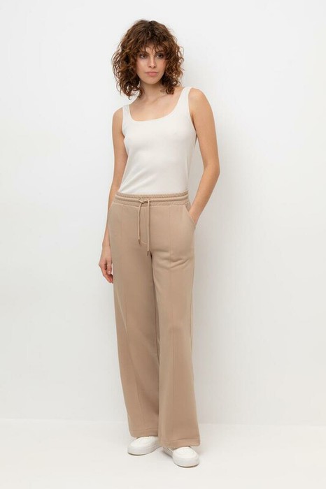 Брюки прямого кроя со стрелкой и боковыми карманами из мягкого петельчатого футера. В составе 80% натурального хлопка и 20% полиэстера, при этом полиэстер ввязан внутрь по особой технологии и не соприкасается с кожей. Пояс со шнурком позволяет регулировать посадку. Идеальный и комфортный вариант на каждый день.